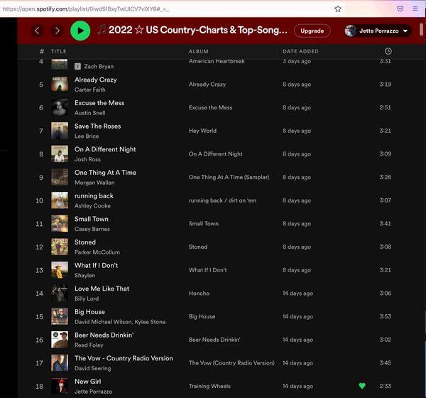 Jette currently holds the record for "longest run for a first single for a female independent country artist" and has also charted above many well-known major artists in the past-nearly 9 months.